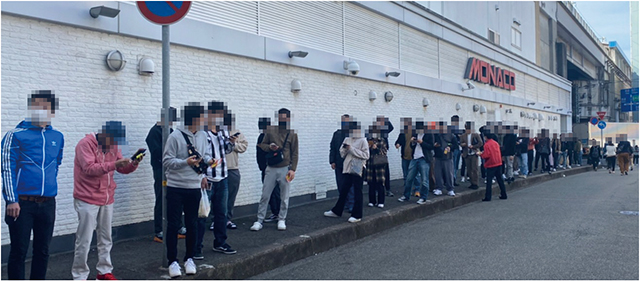 前回10/16(土)の「英雄の軌跡~ヒーローズレポート~」があまりにも好評だったため、11月もここ「モナコ西明石」を含む4店舗で同時実施を決定。ということは…そう、またもや新キャラ「アップ」が4店舗に降臨することを意味する。それを知ってか知らずか、11/6の開店前には273人の行列が…!