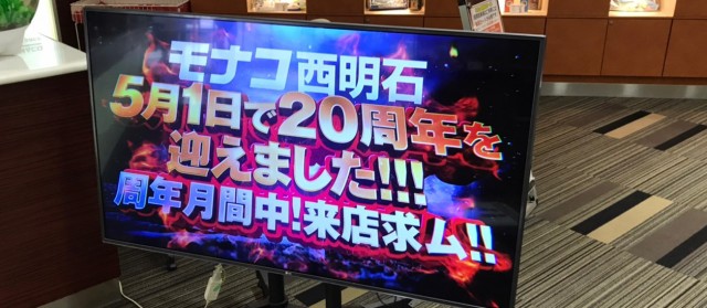 「ヒーローズレポート」実施の度にトータル差枚数で優秀な成績を残している注目店が『モナコ西明石』。前回の「英雄」取材は僅か5日前に行われたばかりだが、同店が創立20周年を迎えたと聞きつけ再びの突撃となった。朝イチから並んだ200人強のファンが期待で胸膨らむ中、その結果は…差枚数+7万枚オーバーの大勝利! 記念日を見事なハイスコアで飾った[1000円/46枚] スロ全120台の出玉データを、以下からチェックしていこう。