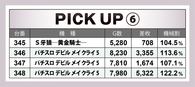 今回全120台の差枚数はトータルで+78,609枚と、連休中&この規模の設置台数とは思えないような、そして過去最多の大記録を達成! さらに驚きは評価ptは38と、こちらもゴールデンウイーク中とは信じがたい&他店舗でも見たことがないハイレベルの成績を成し遂げた。同店にもはや死角なし、無敗伝説は永久に続きそう!?