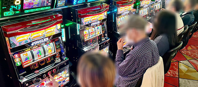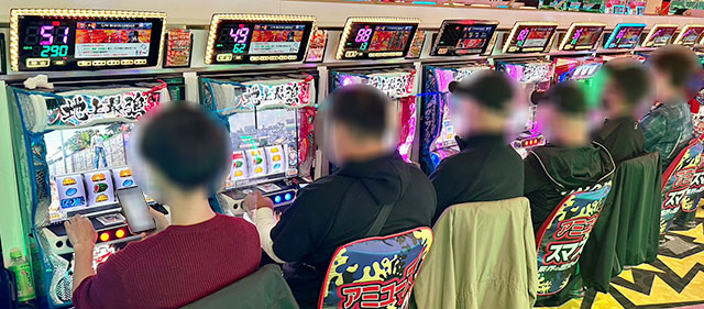 ノーマル機・AT機ともにハイパフォーマンスを披露した1日。『マイジャグラーV』から万回転OVERが飛び出し、『押忍!番長ZERO』346番台+5,056枚や『パチスロ バイオハザード7 レジデント イービル』373番台+4,494枚といった熱気を確認できる。また新しく登場したスマスロ『Lバキ 強くなりたくば喰らえ!!!』456番台+6,244枚という記録も見られ、館内各所で活気や熱気を放っていたのが印象的だ。