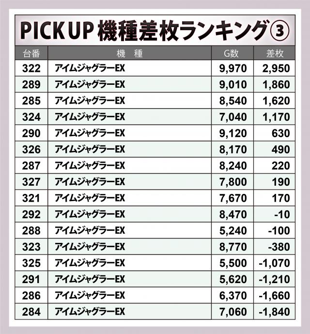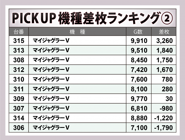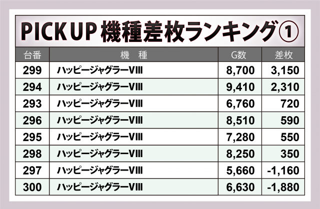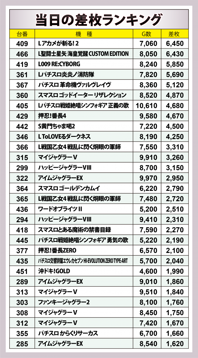 ※差枚数順に掲載しています。