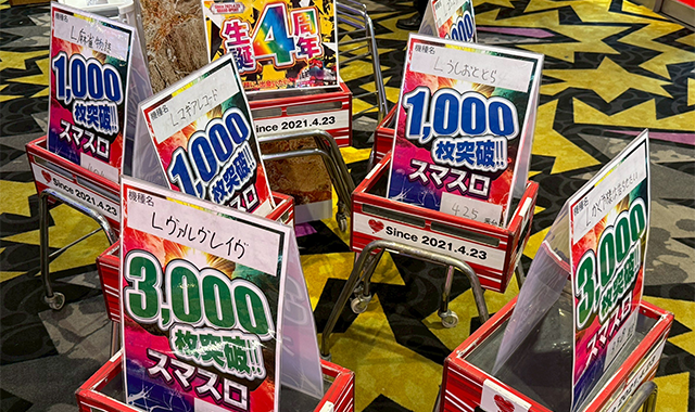 以上が4月23日に実施された「英雄のリアル」の結果である。万枚オーバーが5台誕生したうえに、1万回転超えのノーマルタイプも見られるなど、驚愕の盛り上がりを見せていた。しかも当日は2日連続実施の初日。翌日への期待感がこれでもかと高まりつつ、閉幕をむかえている。やはり同店の動向のチェックは欠かせない。そう思わせてくれた、大興奮の1日となった。