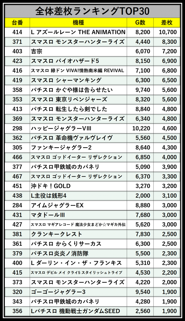 その結果の中から、ぱちタウンが注目すべきポイントを厳選してユーザーにお届け!プレイヤーが楽しんだ一日を下記データにて振り返ってみて欲しい。