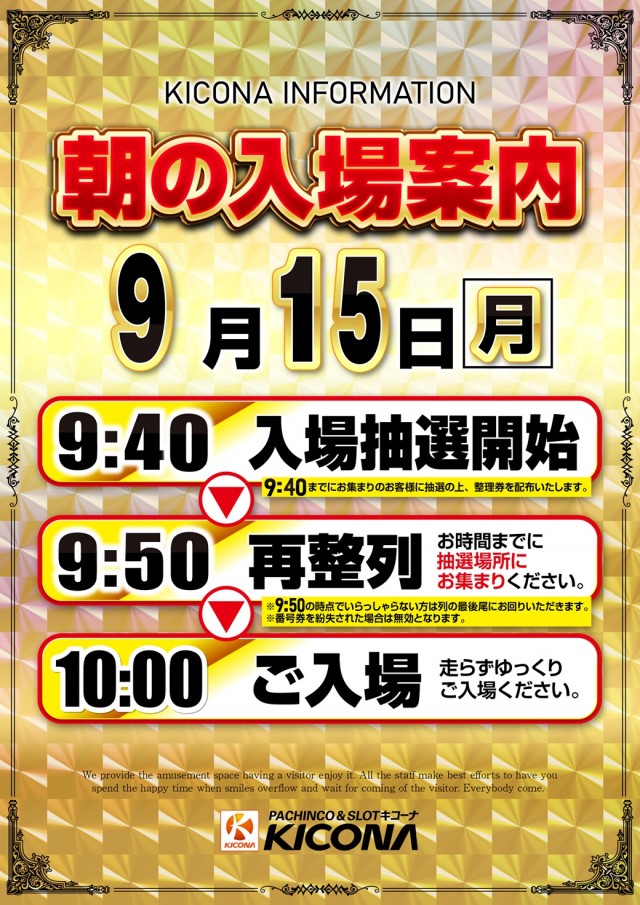 9月15日(月)【秋の陣!】!!AM10:00 OPEN!!
