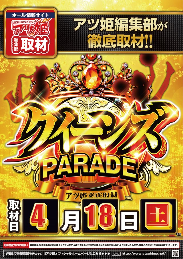 4月11日アツ姫皇帝のリアル取材来店!入場抽選9:40開始!