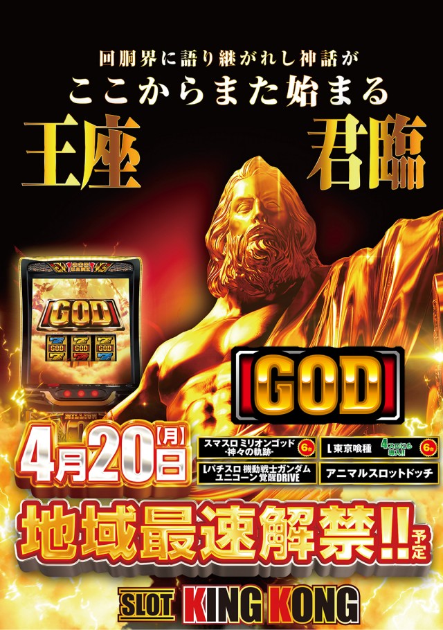 4月20日ミリオンゴッド~神々の軌跡~地域最速解禁!全6台