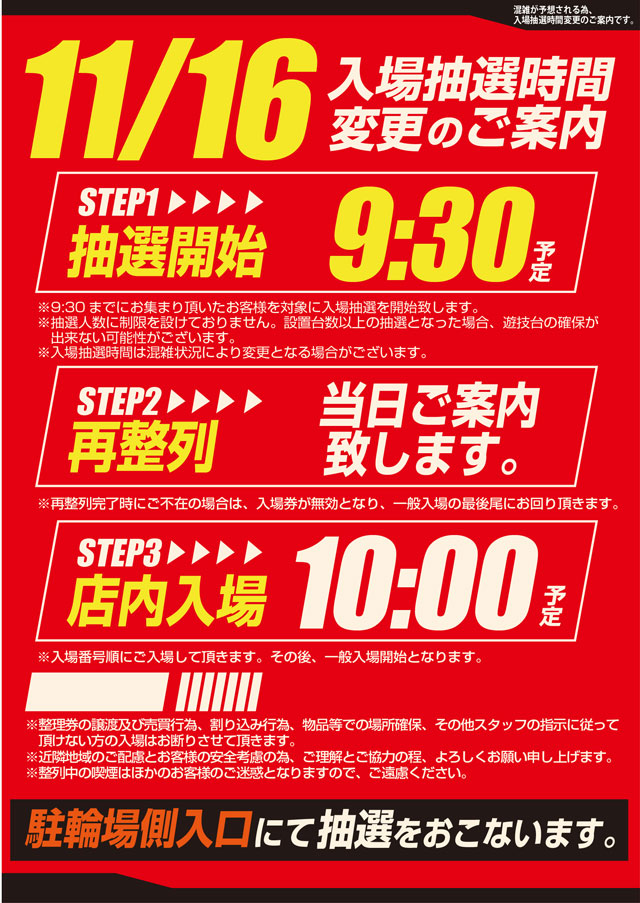 11月16日王者の貫禄取材来店!入場抽選9:30