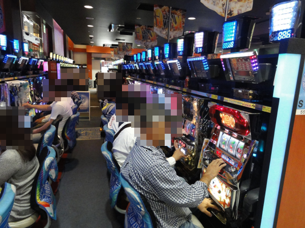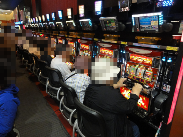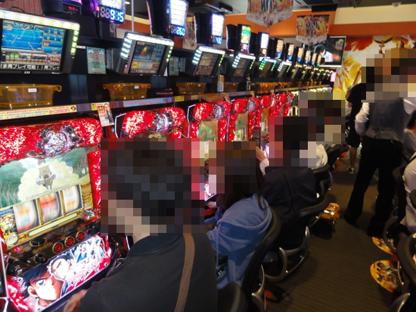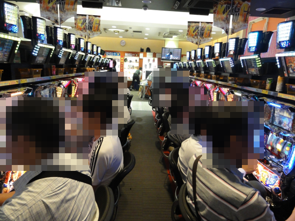 ジャグラーコーナーもほぼフル稼働と賑わっており、幅広い層のプレイヤーが遊技をおこなっていた。何度もボーナスを獲得していたプレイヤーの笑顔は印象に残るほどに輝いて見えた。