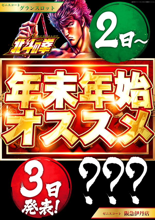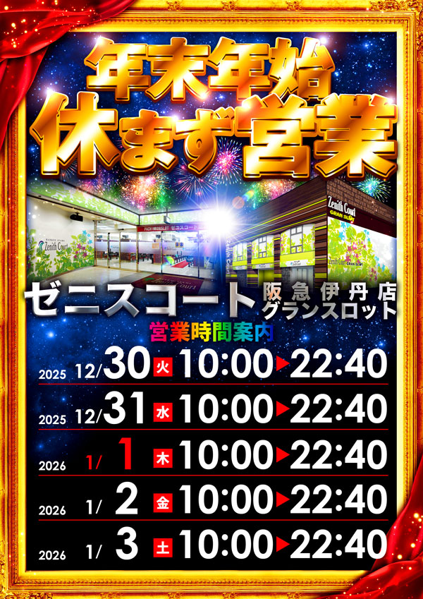 新台入替前日はお休みとさせて頂きます。 |