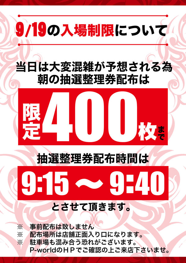 9:40に店頭前にて抽選を行います。詳細は店舗にご確認下さいませ。 |