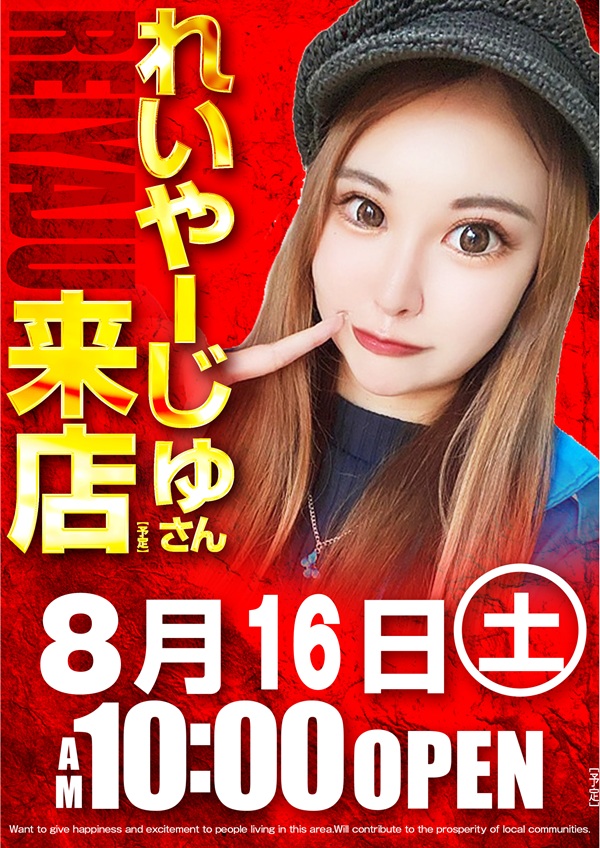 明日8月16日(土)★れいやーじゅ来店予定×勇猛邁進★