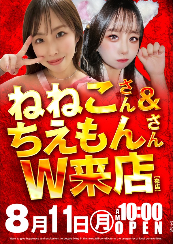 本日8月11日(月)★ねねこ&ちえもん★W来店予定★