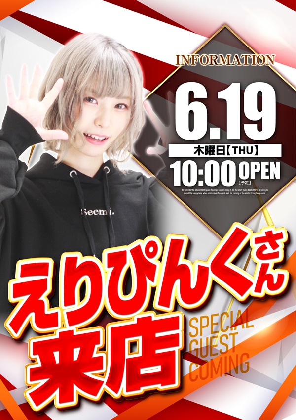 本日6月19日(木)★感謝×えりぴんく来店予定★