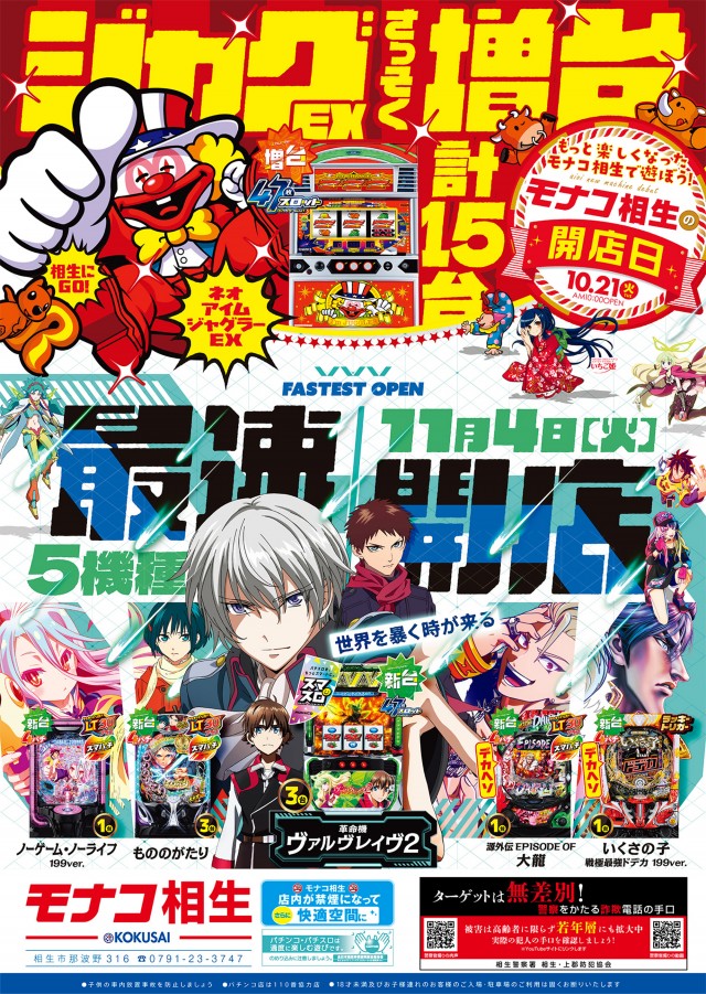 【モナコ相生】★本日★10月21日(火)・新台開店日!