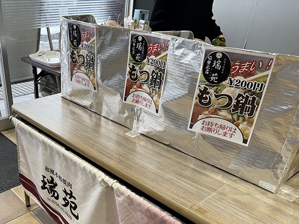 取材時はもつ鍋が販売されており、プレイヤーたちの小腹を満たしていた。