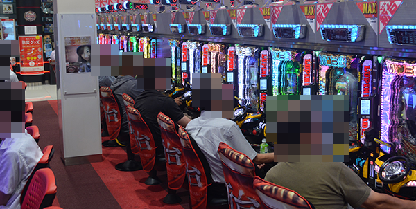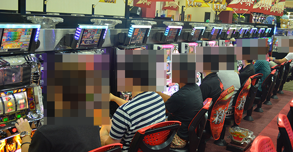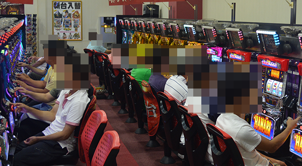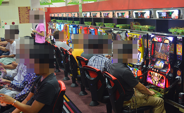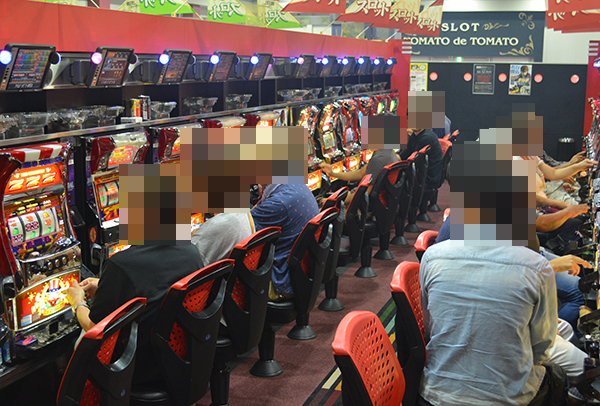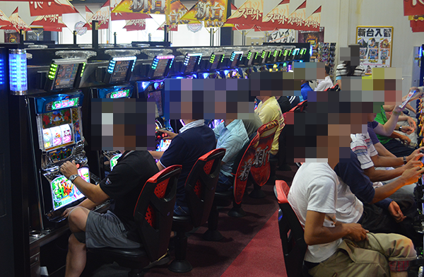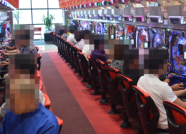4円パチスロの支持も厚く、ほぼ満席といった状況。