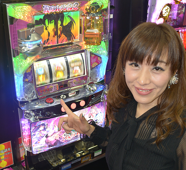 20円パチスロの「戦国コレクション2」で遊技を楽しんでおり、ホール内の雰囲気をさらに華やかに彩っていた。