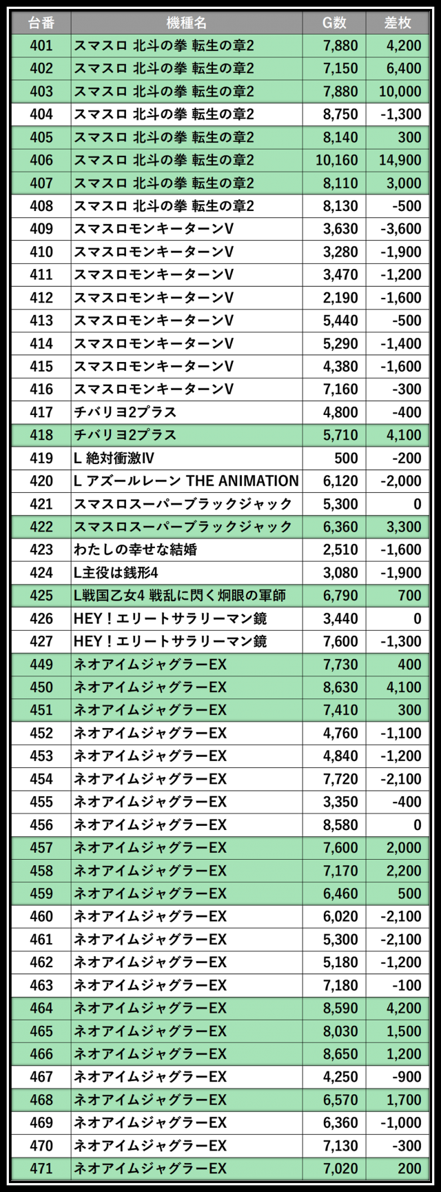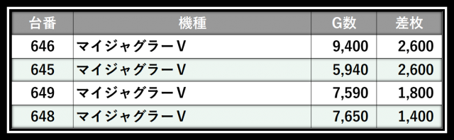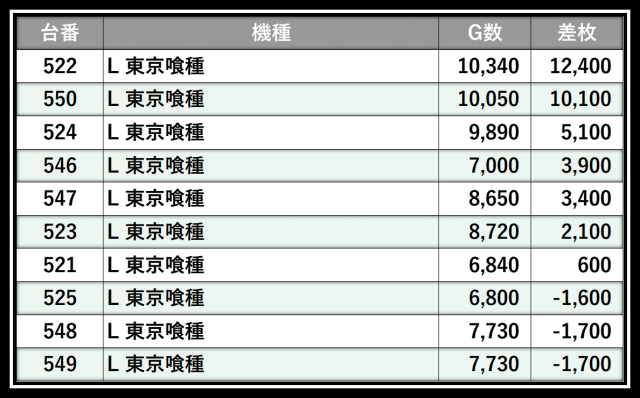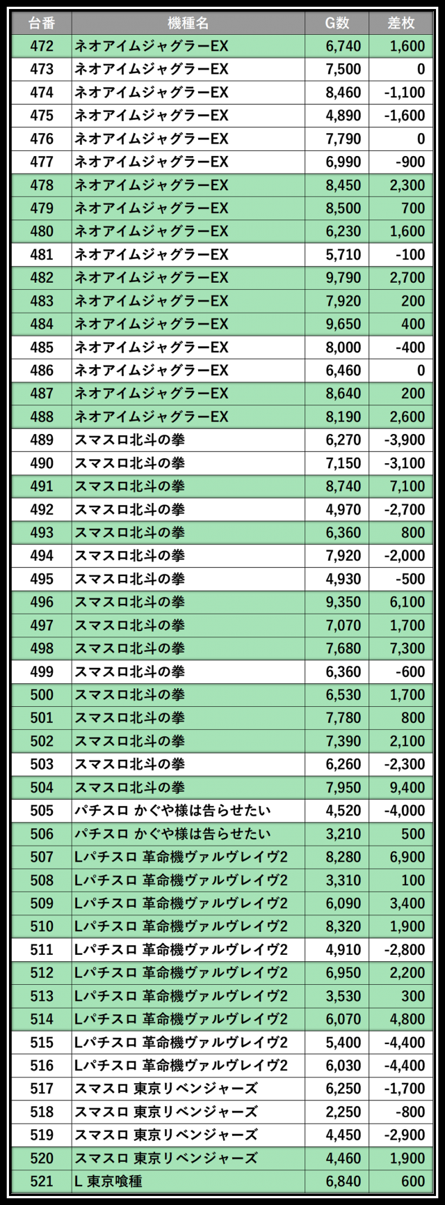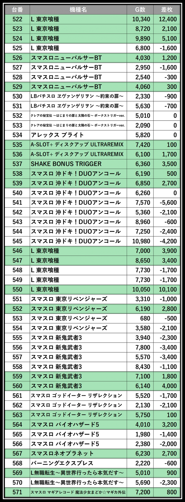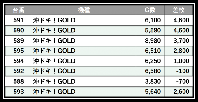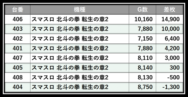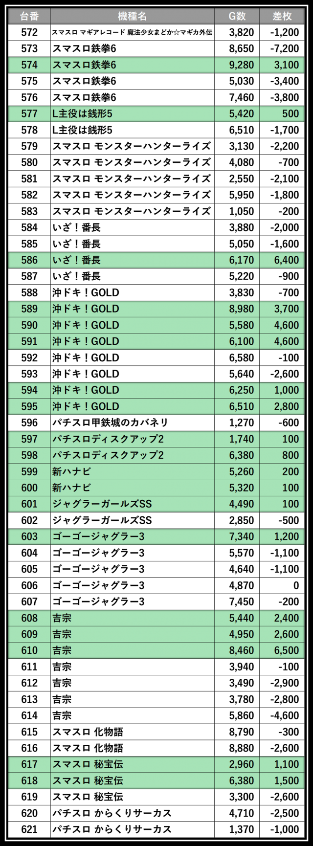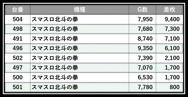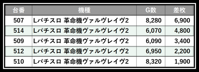 ※差枚数順に掲載しています