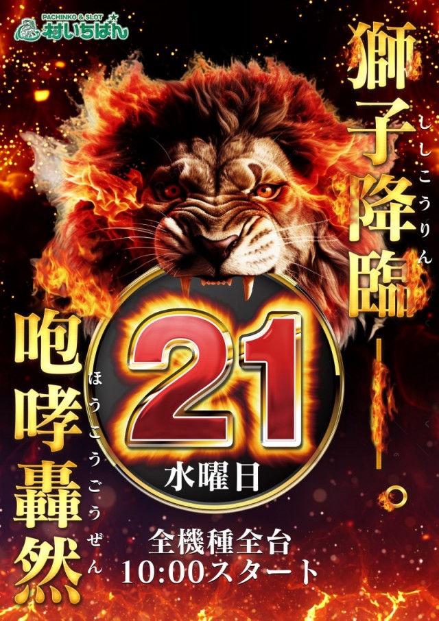 21日(水) ー 獅子降臨 ー いざ10時開店!!