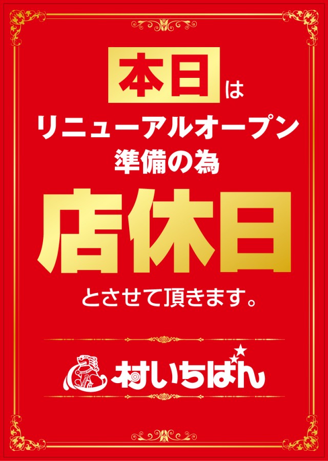 本日1周年リニューアル準備の為店休とさせて頂います❗❗