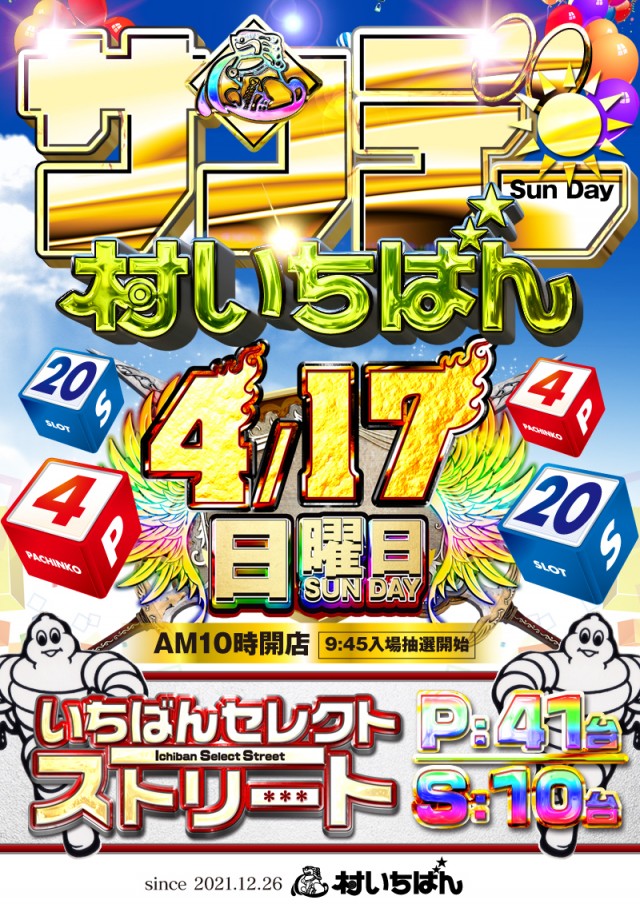 明日4月17日は🌞日曜日🌞9:45抽選❕お待ちしております❗
