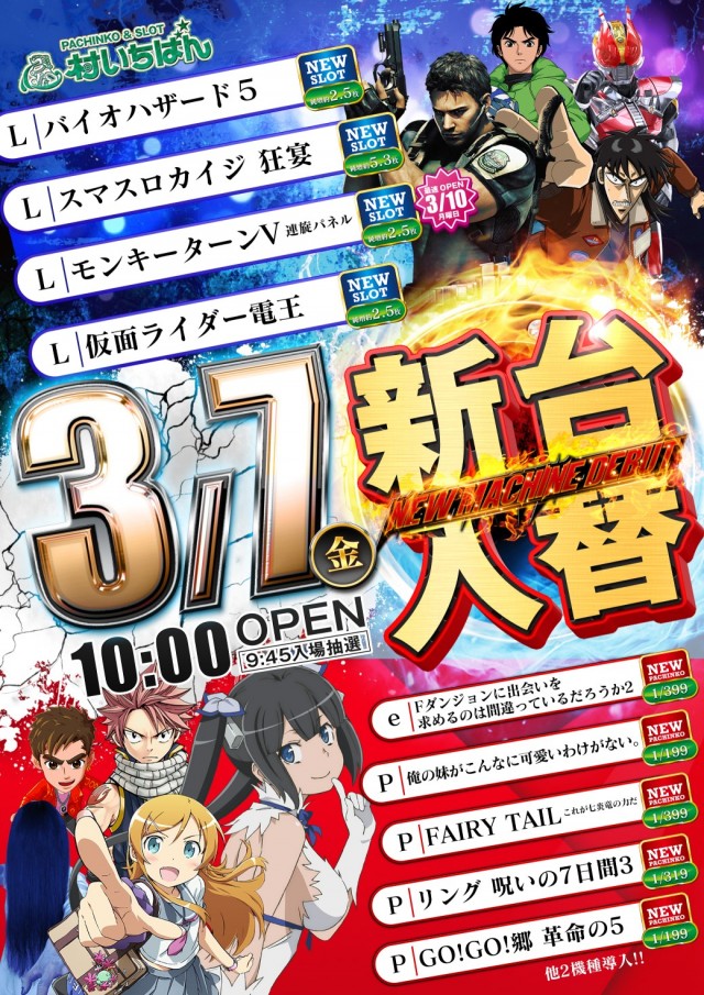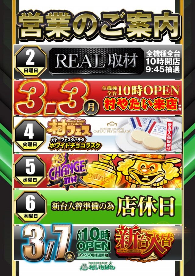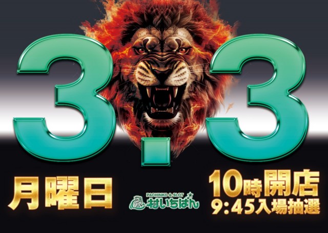 3⃣月3⃣日全機種全台10時OPEN!+屋台来店予定!