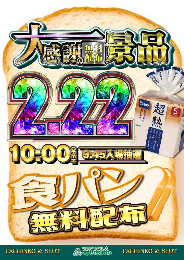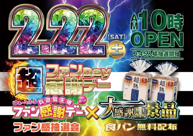 2⃣.2⃣2⃣(土)ファン感謝デー&大感謝の食パン無料配布
