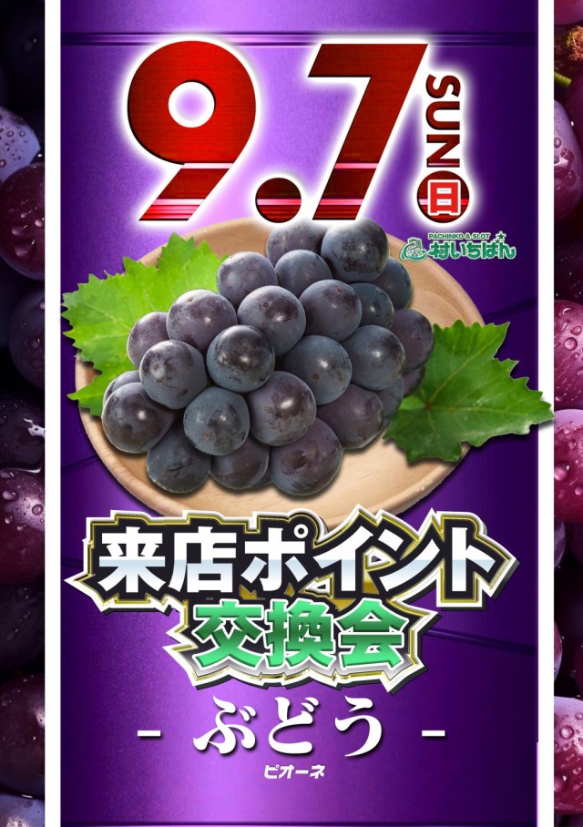 ポイント景品交換会本日はぶどう【ピオーネ】をご用意