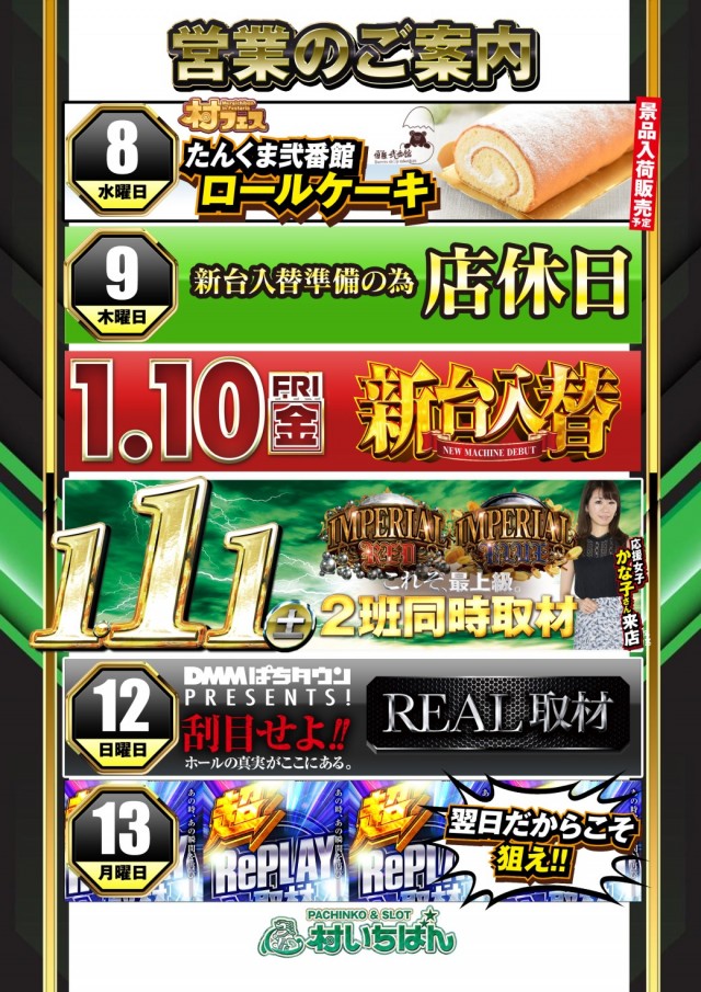 明日10日は新年初新台入替!!