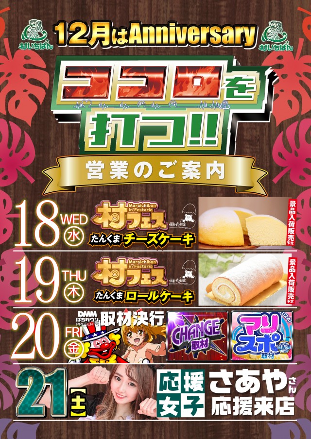 【村いち】21日(土)応援女子さあやさん来店予定!【3周年】