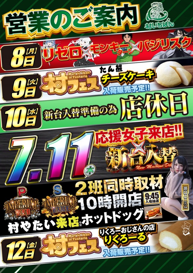 11日(木)新台OPEN!全機種全台10時開店!【取材決行】
