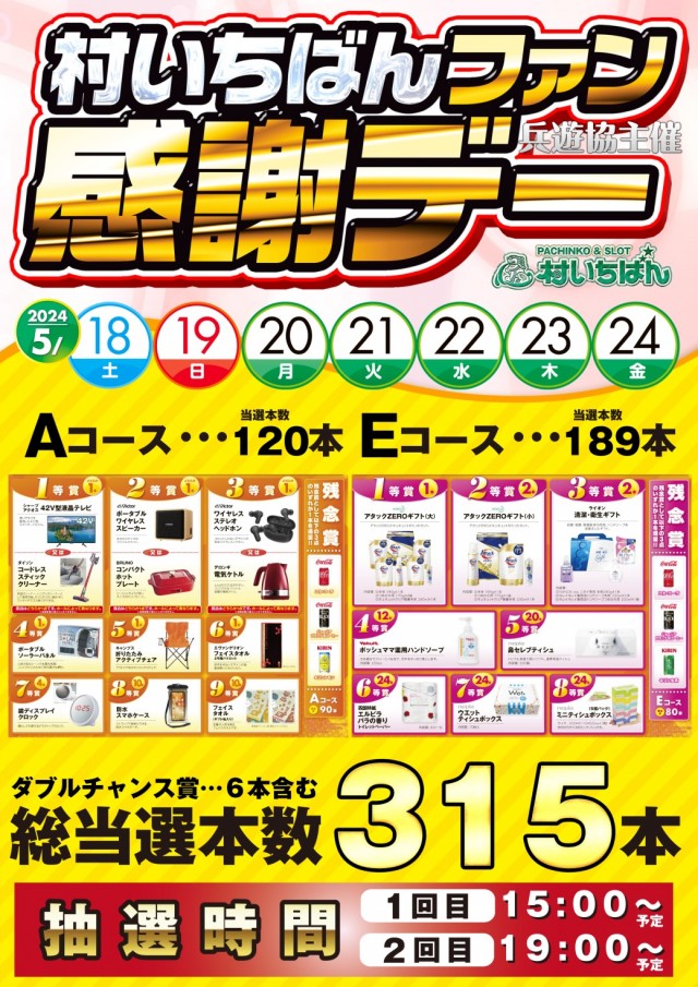 23日(木)村いちばんファン感謝デー開催中!!