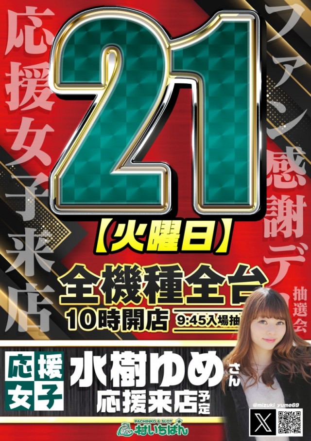 【応援女子】明日5.21水樹ゆめさん応援来店予定【ファン感】