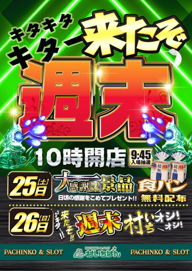 【来たぞ週末】25日(土)大大大感謝の無料景品配布予定!!