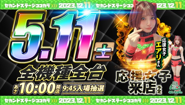 【応援女子】11日(土)全機種全台10時開店!!【来店予定】