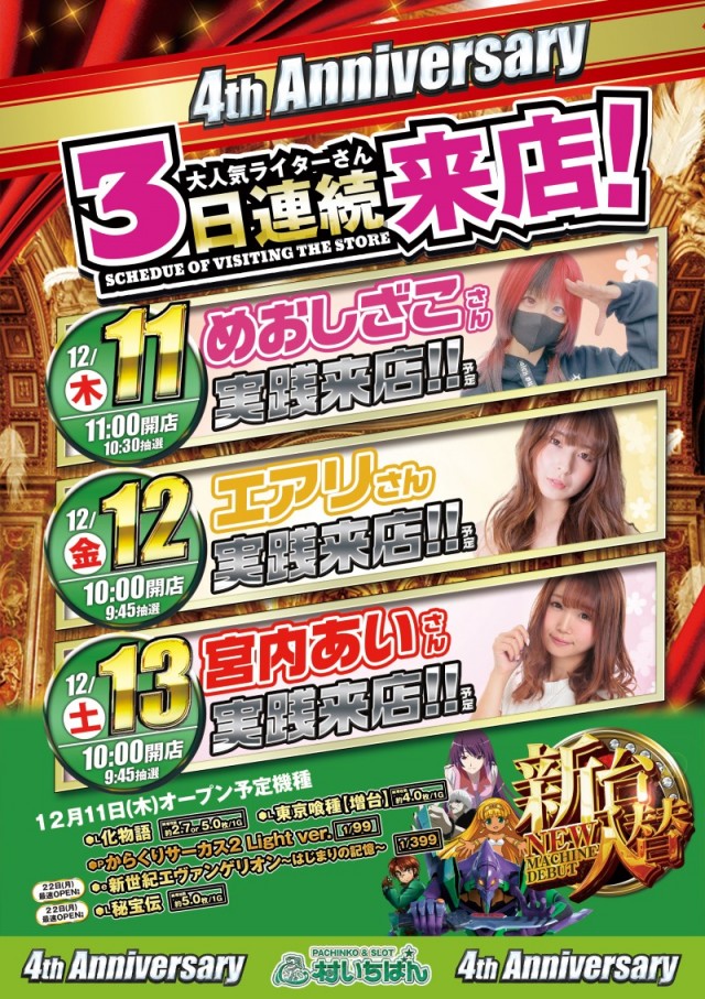 祝4周年!宮内あい様実践来店!明日10時開店です!