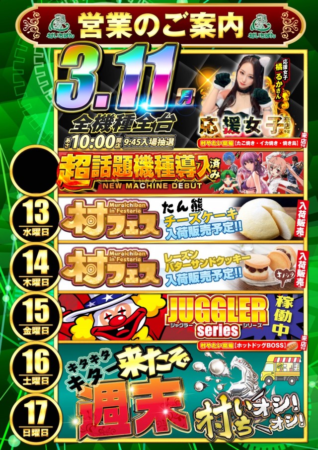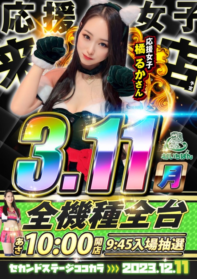 【応援女子】11日(月)全機種全台10時開店!!【来店予定】