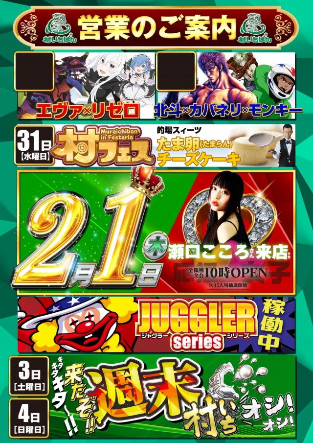 【応援女子】明日2.1瀬口こころさん応援来店予定【村屋台】