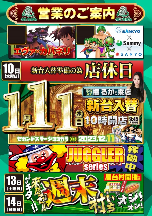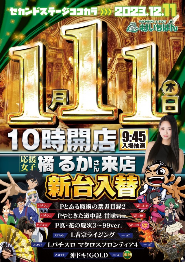 【初入替】本日1.11応援女子来店+新台入替【10時開店】