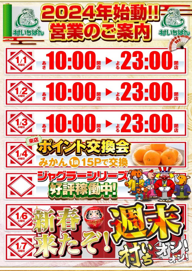 【2024年】1月2日(火)本日も10時開店!!【始動】