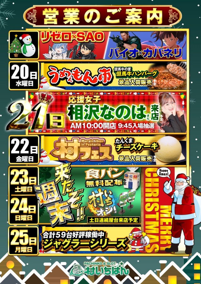 21日(木)相沢なのはさん応援来店予定!🎅コスで登場!?
