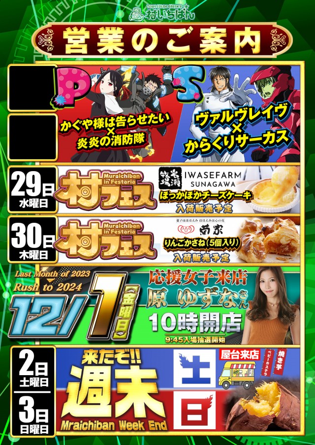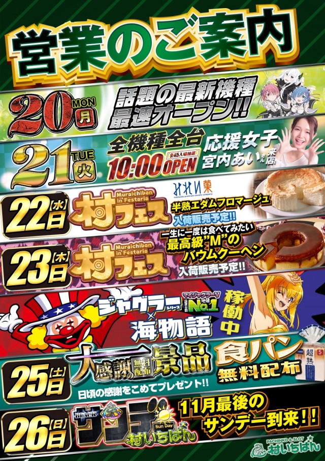 【週末】11月26日10時開店!!【来たぞ日曜日】