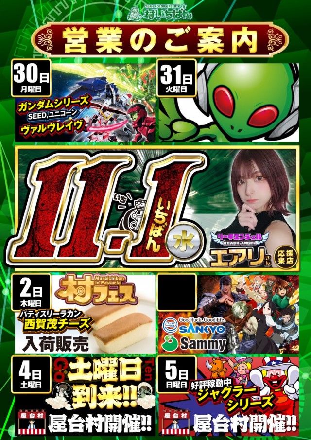 【ジャグラー】11月5日10時開店!!来たぞ日曜日【屋台村】