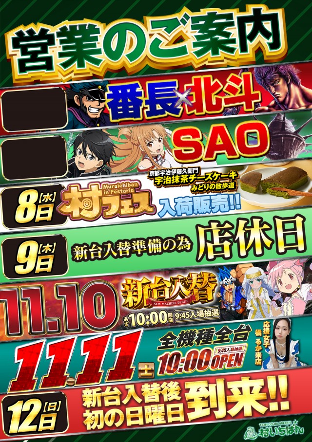 【屋台村】11月4日10時開店!!【来たぞ土曜日】