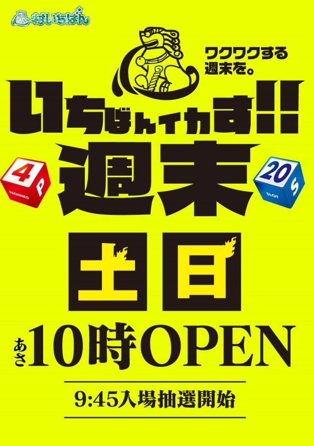 【日曜日】いちばんイカす週末!!10時開店!!【日曜日】