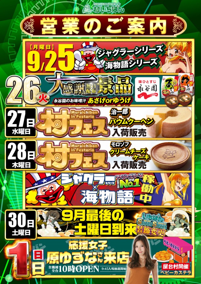 【海×ジャグ】9月25⃣日(金)10時開店!!【好評稼働中】