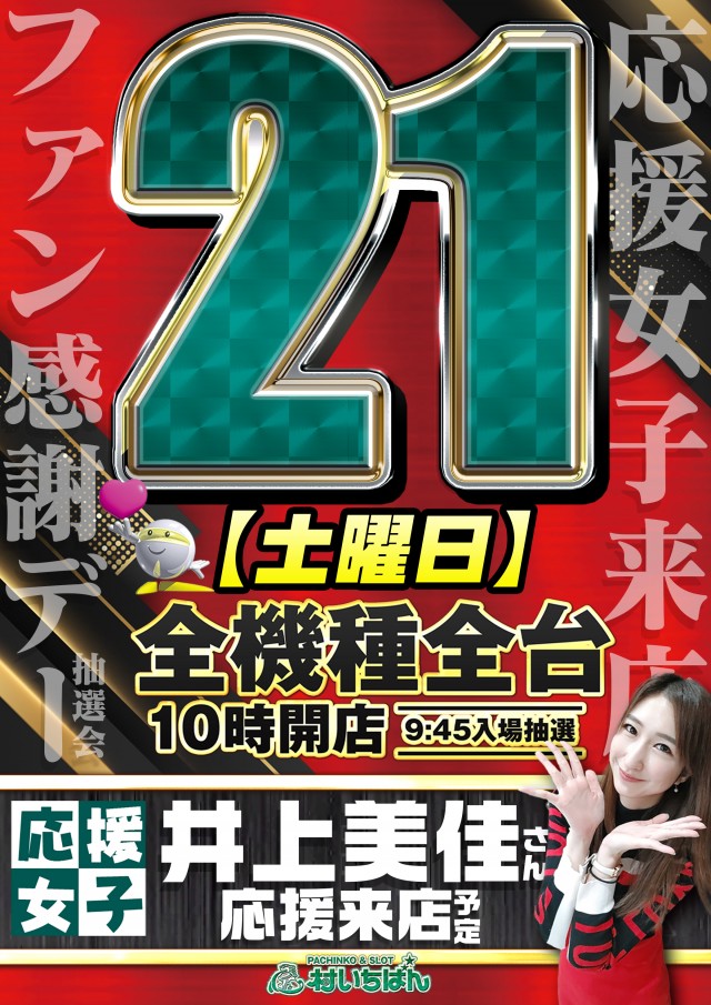 明日2月21日(土)井上美佳さん来店&ファン感謝デー抽選会!