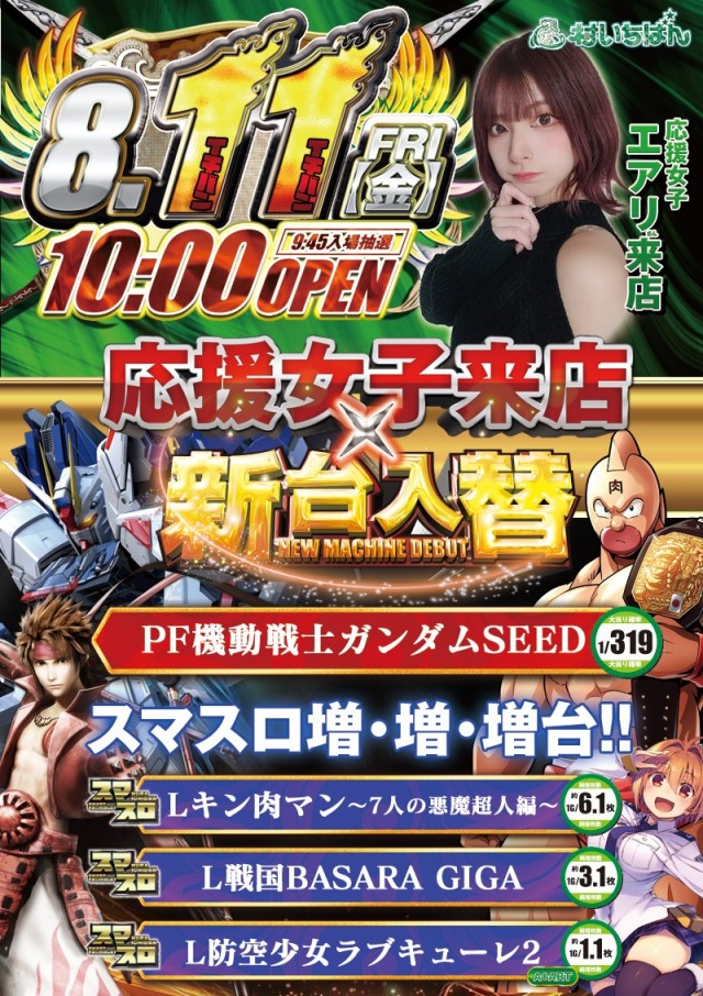 1⃣1⃣日(金)は新台入替✖応援女子【エアリさん】来店