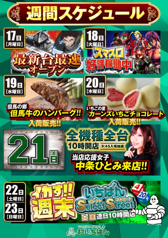 【中条ひとみ】2⃣1⃣日(金)10時開店!!【応援女子来店】