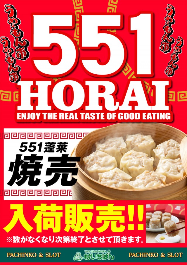 【うめぇもん市】5日(水)551の蓬莱シュウマイ入荷販売❗
